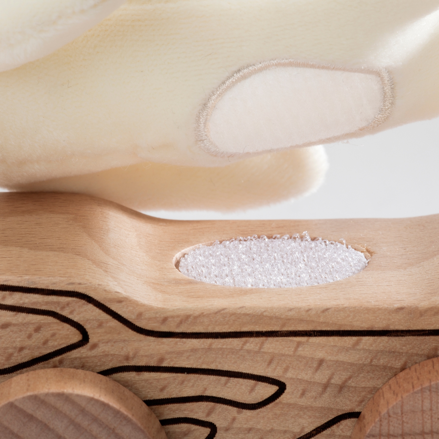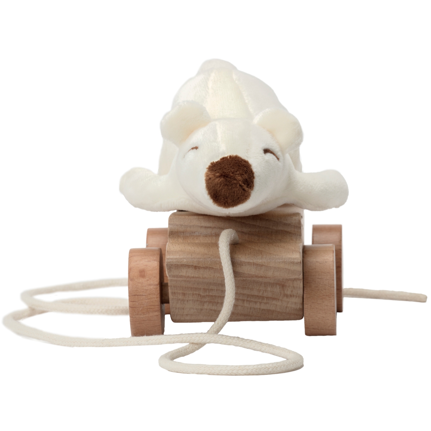 Den genuina premiumleksaken i trä kommer med många mjuka inslag och graverade detaljer i lekfulla illustrationer på grenen. Björnen kan tas av och sättas på med karborrefästning och har en broderad/tryckt stjärna på magen. Hur känns björnens mjuka kropp? Och hur låter det när den dras över golvet? Dragleksaken uppmuntrar det lilla barnet till att upptäcka och blir en rolig kompis att ha med sig på äventyret!