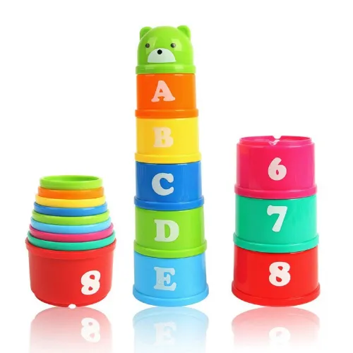 Roligt att leka med för de minsta. Utvecklar finmotoriken och koordinationen. Stapla muggarna i eller på varandra, i alfabetisk ordning och skapa ett högt färgglatt torn. Använd i badet och låt vattnet rinna ur muggarna.