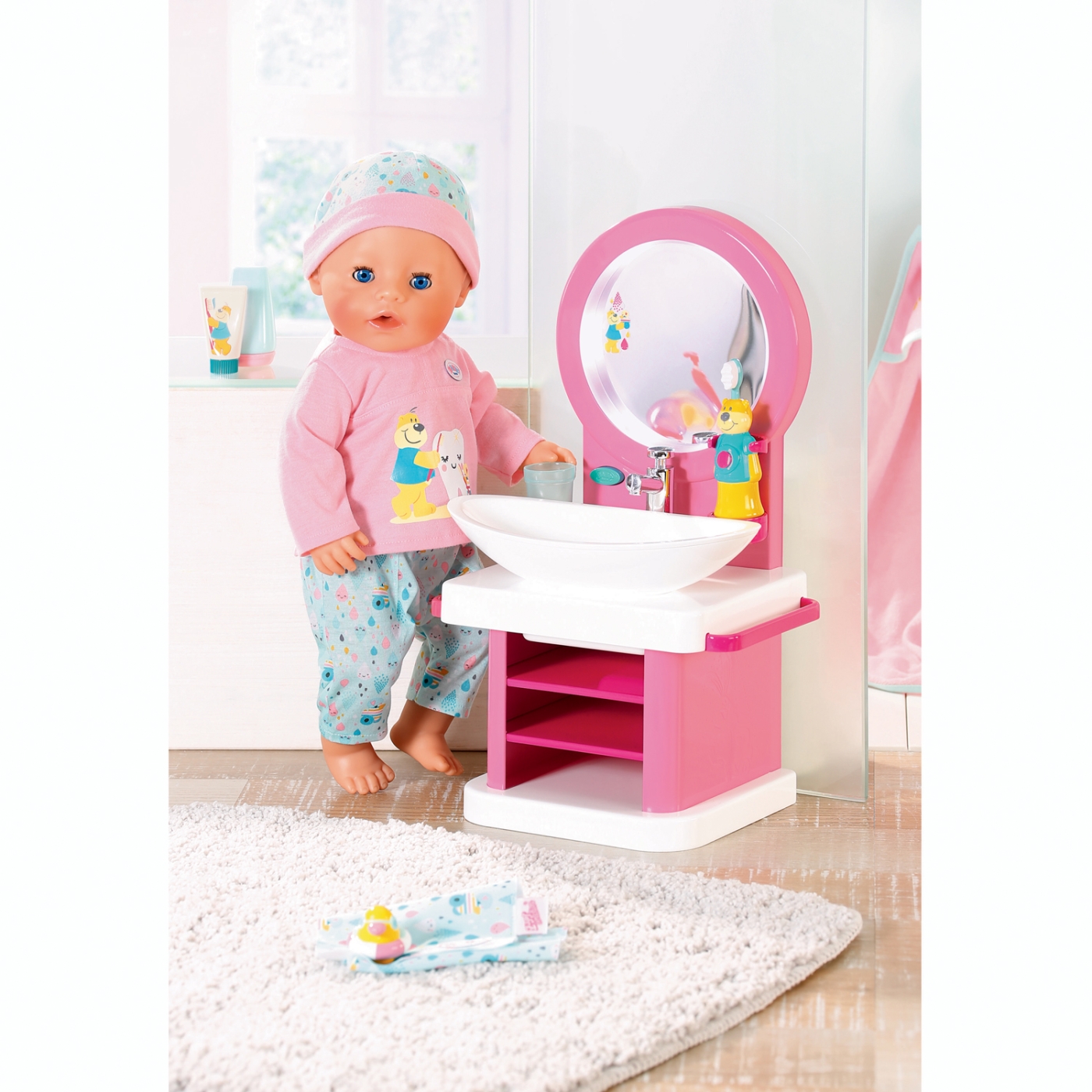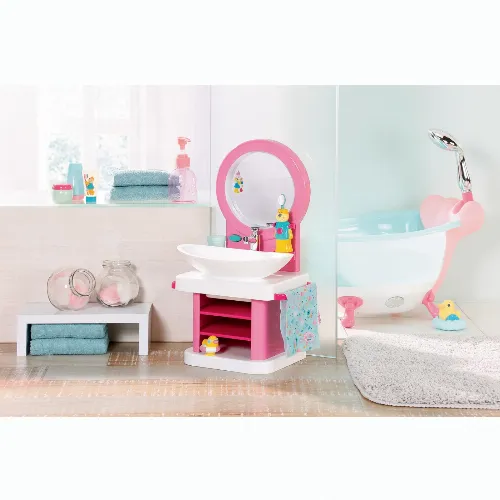 - BABY born Bad tandvårdspa med tvättfat och spegel, ljus- och ljudeffekter, tandborste, tandmugg och handduk