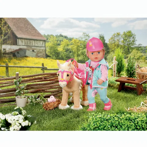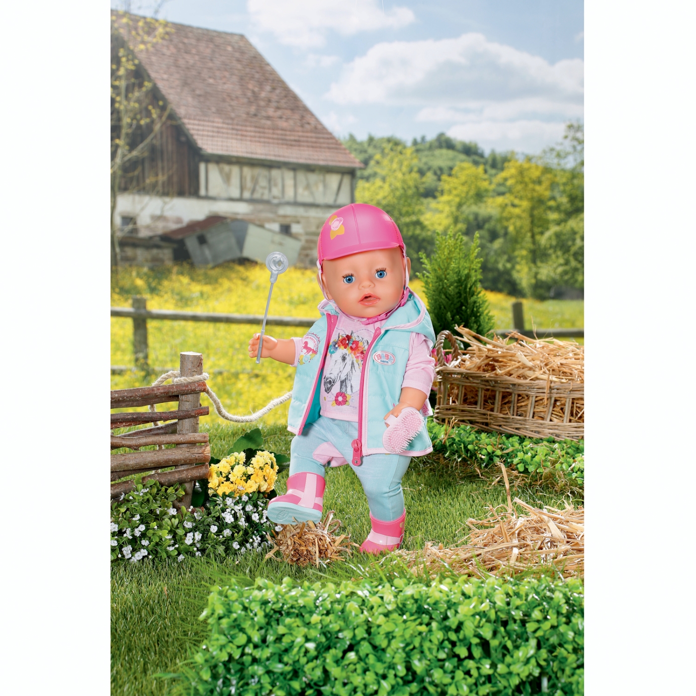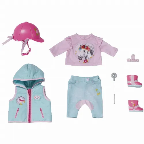 - BABY born Lyx ridoutfit 43 cm med väst, blus, byxor, stövlar