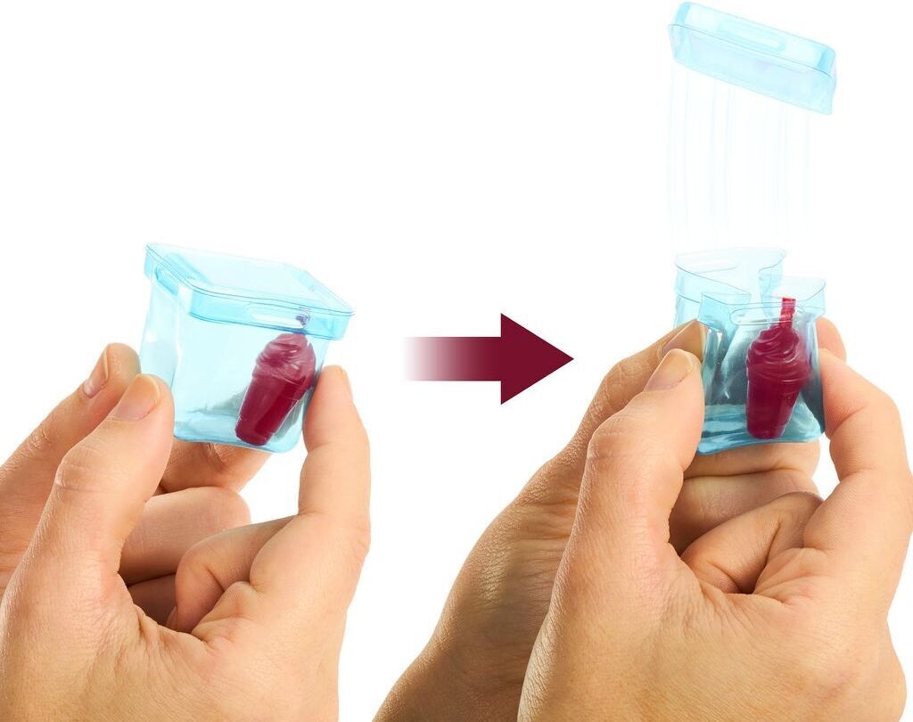 Klicka sugröret genom locket på smoothiemuggen och plocka upp underbara överraskningar. Hitta en somrig Barbie Pop Reveal Watermelon Crush-docka och en fruktdoftande valp, och Pop isbitar för att avslöja rullskridskor och andra coola grejer.