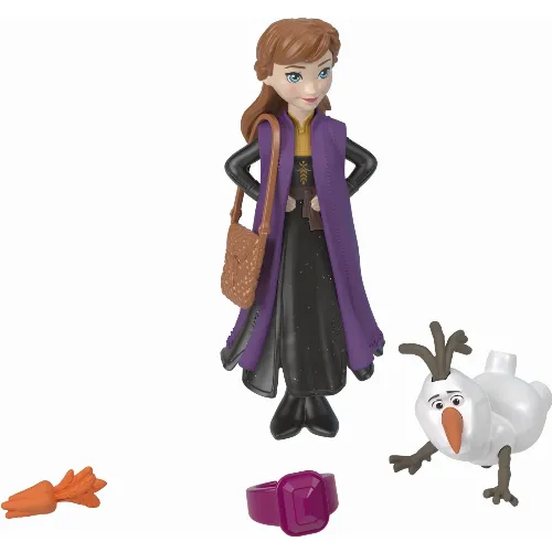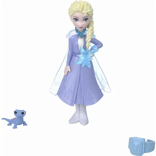 Öppna den isiga överraskningen och avslöja en frusen docka bland snön! Överraskningspaketet innehåller sex överraskningar med Frozen-tema: en docka, en cape, en liten vän, två tillbehör och spelarens egen ring.