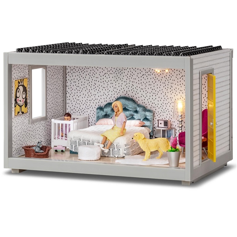 Är det en lägenhet i ett höghus, en liten stuga eller en undervåning till ditt Lundby Life eller Lundby Creative dockskåp? Skapa rum för lek genom att bygga ihop flera moduler på bredden eller höjden. Bara fantasin sätter gränserna! Dockskåpsmodulerna finns i tre olika storlekar och har vändbara väggar med vackra tapeter från Sandberg Wallpaper. Du kan också ta bort väggarna helt, för att kunna leka i huset från flera håll.