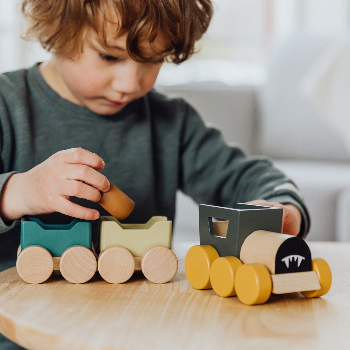 Micki Tågset Monster innehåller: 1 tåg, 2 vagnar och 1 figur. Produkten ingår i en serie av olika lekvärldar och lekset som barnet kan bygga ihop, bygga ut och mixa hur hen vill. Det är bara fantasin som sätter gränserna! FSC-märkt trä.