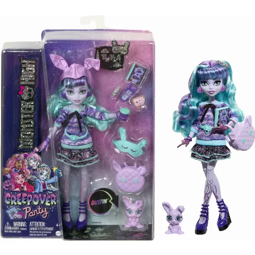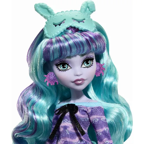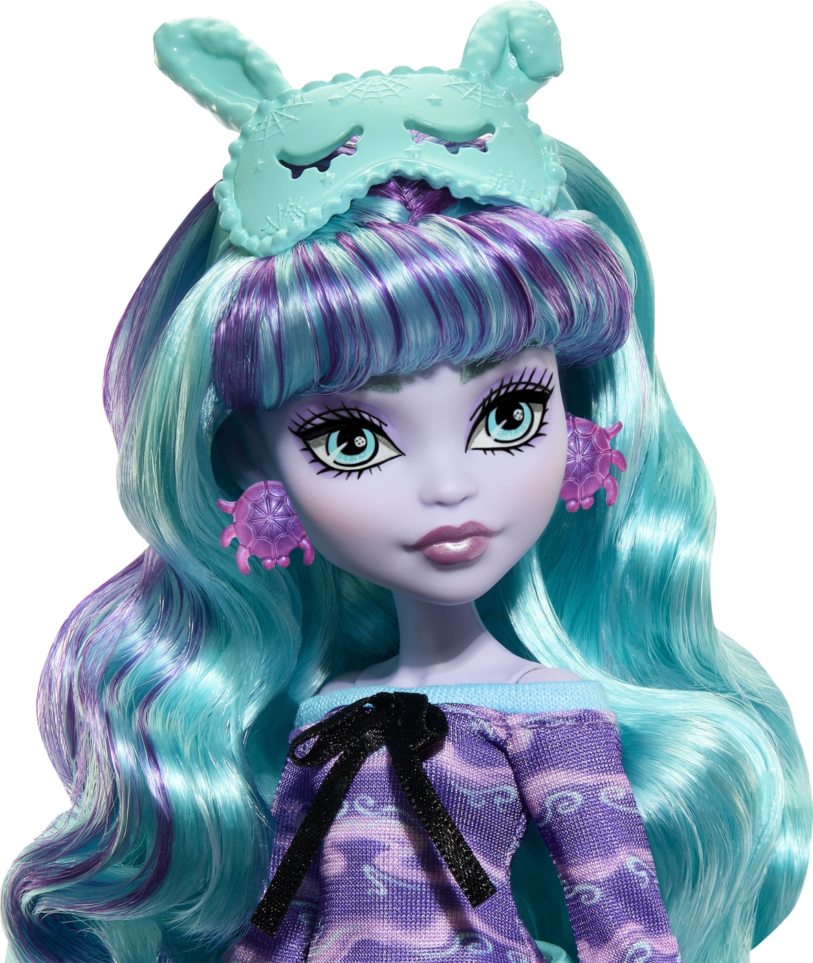 Monster High Ett pyjamasparty i -stil är en fröjd med en touch av spöklik magi! Twyla är klädd enligt sin stil och bär med sig en chaser och totalt sju pyjamaspartytillbehör. Åldersrekommendation 4+