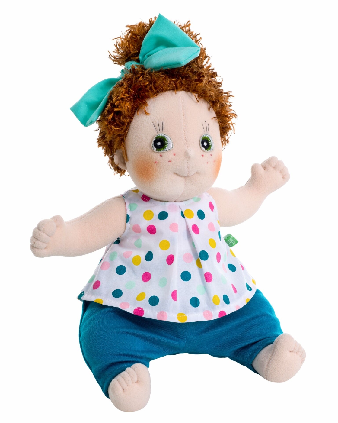 Cicci is one of Rubens Kids' multicultural dolls who loves travelling the world. Rubens Kids opens the door to a world of adventure, play and fun. Pack your bags, get ready and join the journey to explore the world with these dolls of different nationalities. The Cicci doll is 36 cm tall, has fair skin with freckles on her cheeks, red hair, green eyes and removable clothing. Rubens Baby dolls are made from 100% Polyester fleece and have 100% Global Recycled Standard (GRS) Polyester fibrefill.