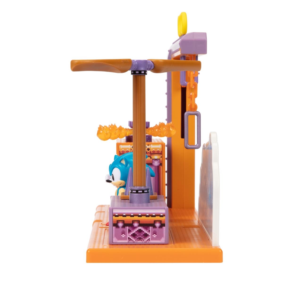 Flying Battery Zone Playset är en fantastisk present till barn och Sonic-fans! Återskapa handlingen från spelen med det här utomordentligt detaljerade leksetet och dess spelbara funktioner. Detta lekset innehåller en Sonic-figur i två och en halv tums skala och tillbehör på pinnar för att anpassa. Sonic springer i superfart genom roterande lågor och över spikfällor. Det finns också ett propellerblad som Sonic måste hålla i för att inte flyga iväg. Detta lekset är barndrivet och kräver inga batterier. Ta med dig leksetet och ha kul när du är på språng! Bygg om ditt Flying Battery Zone Playset till en Sonic-värld genom att lägga till fler Sonic the Hedgehog™-figurer och tillbehör från JAKKS Pacific, Inc. (säljs separat). Leksetet innehåller pinnar för att visa upp Sonic-figurer och tillbehör."