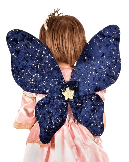 Vingar i krossad sammet med gyllene tryckta stjärnor. Glitterstjärna i mitten. Gyllene, elastiska axelremmar