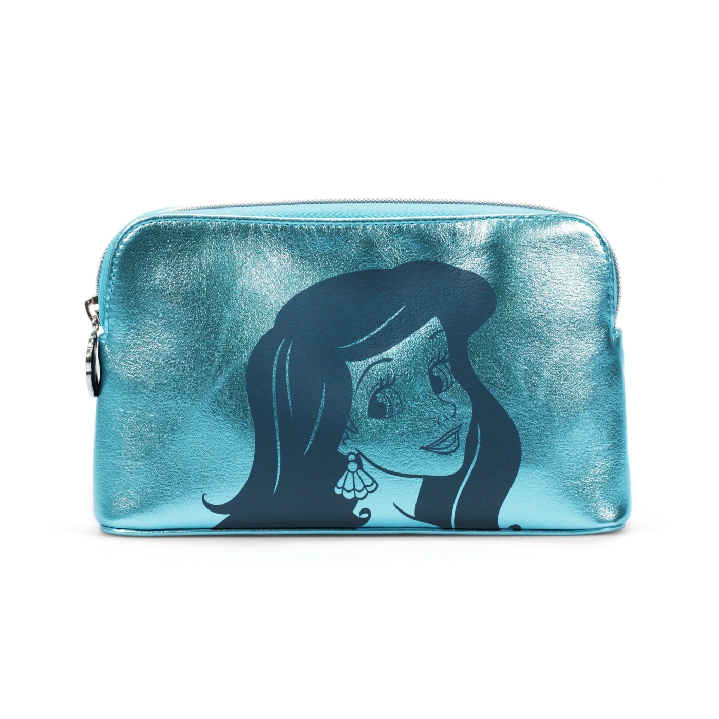 Denna Disney Princess kosmetikväska är perfekt för touch ups och för att få det att se ut som om du helt enkelt tvättat dig så här! Med en iögonfallande teal bakgrund har kosmetikväskan vacker Ariel karaktärskonst på framsidan, medan baksidan av väskan har orden, I washed up like this, allt kompletterat med en skimrande metallisk glasyr. Kosmetikaväskan har en dragkedja med ljusblå kant och ett silverfärgat skal som dragkedja. Ett utmärkt tillskott till alla Disney fans morgonrutiner.