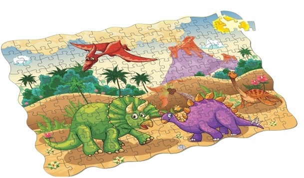 The Dinosaur Puzzle är ett pussel som består av 208 bitar. Pusslet har en festlig, färgglad bild av 4 dinosaurier. Pusslet är 90 x 64 cm. The Dinosaur Puzzle kommer i en robust kartong med ett praktiskt handtag.