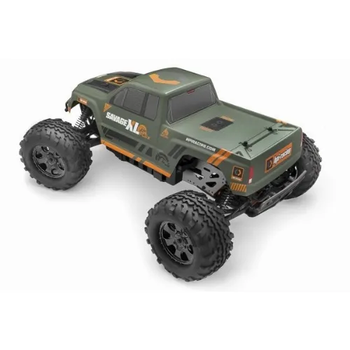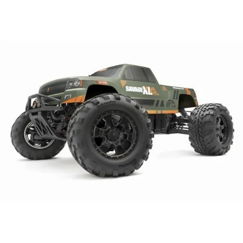 Savage XL FLUX bygger på den redan långa hjulbasen och den extra breda Savage XL-plattformen, med en lågmonterad FLUX 2200KV-motor istället för den stora blockmotorn, en kraftfull FLUX 6S-kapabel speedo istället för en bränsletank och dubbla batterilådor som hänger på utsidan för att rymma en mängd olika batterityper. Driv din Savage XL FLUX med ett par matchande Li-Po-batterier utrustade med 2S 7.4v eller en jättestor 3S 11.1v! Den här monstertrucken är fullpackad med uppgraderingar och tillval, inklusive 3,0 mm TVP-chassi (Twin Vertical Plate), drivhjul av metall, extra kraftfull metallväxelservo, smidda diffväxlar och legendariska Savage-upphängningsdelar! Big Bore-stötdämpare i varje hörn av Savage XL FLUX absorberar chocken från landningar och ger dig utmärkt kontroll och grepp på alla ytor.