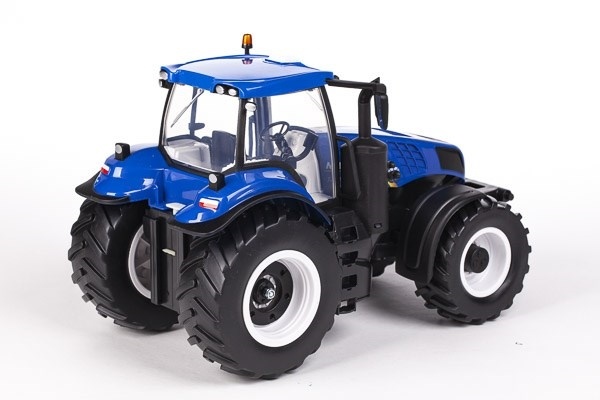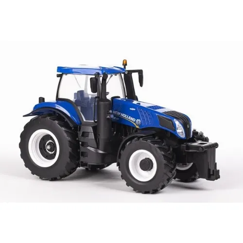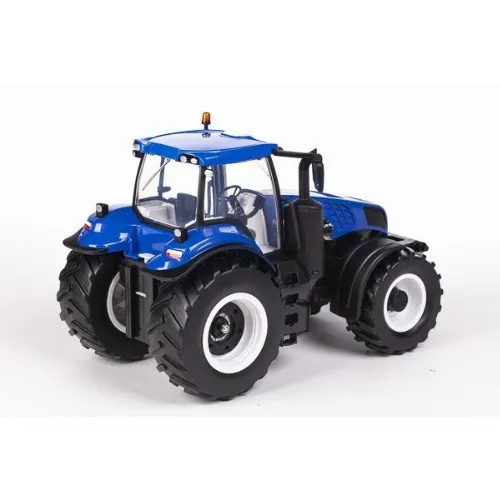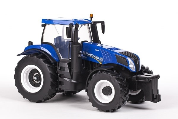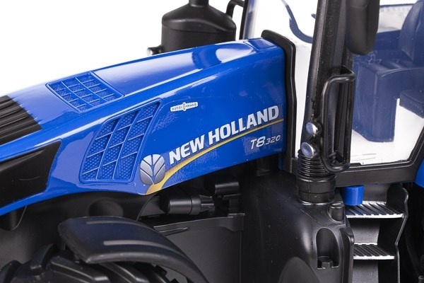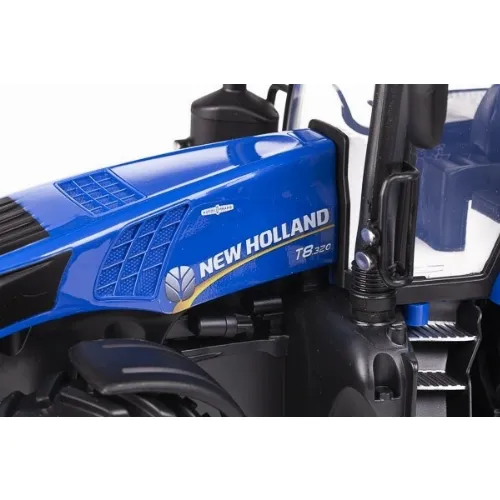 New Holland traktor T8.320 är ett kraftfullt fordon som hanterar tuff terräng utan svårighet. Traktorn präglas av snygga, realistiska detaljer - även i hytten. Traktorn har lampor i strålkastarna och är utrustad med koppling både fram och bak.