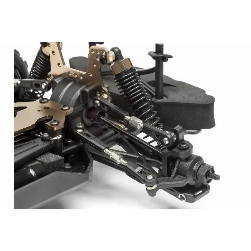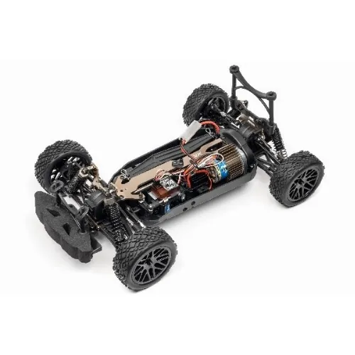 Strada RX har ett gjutet karosschassi som ger hållbarhet och en stabil och tuff plattform för ett starkt drivhjul med 4WD-axel. Förbyggda oljefyllda stötdämpare och oberoende fjädring med dubbla benslut fram och bak ger dig högsta självförtroende på alla körytor. MS-22 servo styr styrningen genom ett dubbelpunktsstyrsystem som har en integrerad servosparare för att skydda servon mot kollisionsskador.