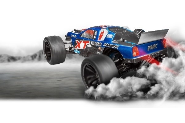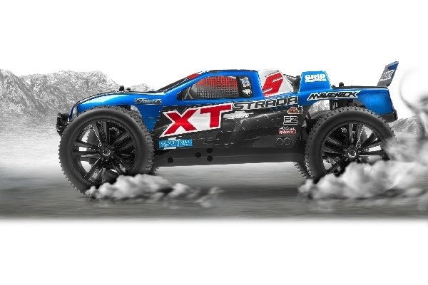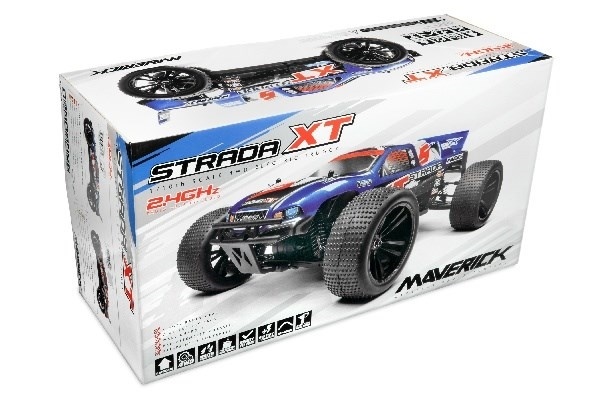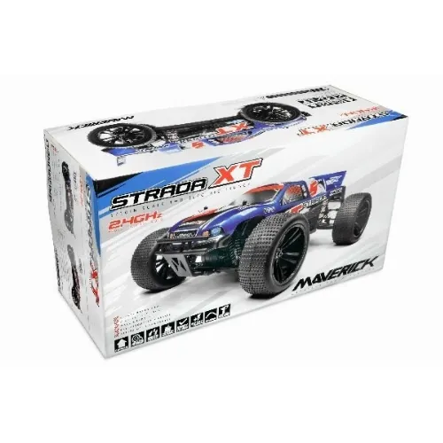 Strada XT 4WD truggy är för den person som vill ha marknära prestanda och tuffheten att komma över alla hinder! Med Maverick Strada XT får du ett kraftfullt fyrhjulsdrivet chassi med drivaxel, helt justerbar racingfjädring och vattentät elektronik för action var du än vill! Med en cool pick-up-kaross med racingspoiler plus gripande racerdäck är Strada XT redo för omedelbar racing action!