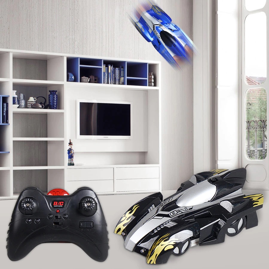 Denna radiostyrda bil fungerar med hjälp av ett vakuumsystem som gör att det går att köra på de flesta plana ytor som väggar, tak, fönster, golv, speglar och garderober. Vill du sluta köra på väggarna kan du slå över från VÄGG-läge till GOLV-läge!
