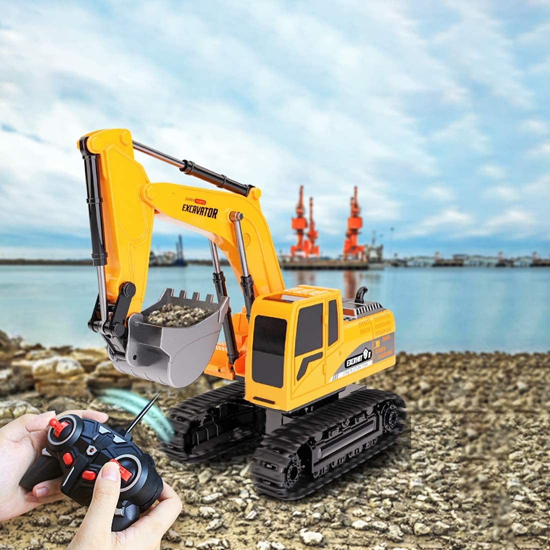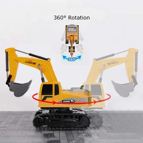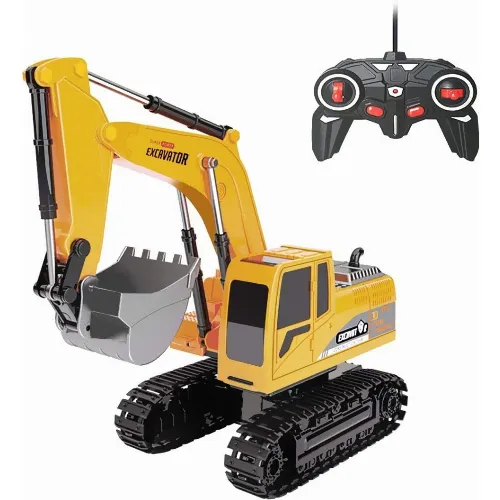 Tycker du eller ditt barn om grävmaskiner? Eller är det något du vill introducera för dina barn? Då är denna radiostyrda grävmaskinen något för dig. Grävmaskinen är i skala 1:24 och väldigt realistisk. Skopan är gjord av metall för att kunna användas till att gräva i jord eller transportera stenar eller dylikt. Grävmaskinen går att köra i 4 riktningar (framåt, bakåt, vänster och höger) och både överdelen samt skopan är styrbar.