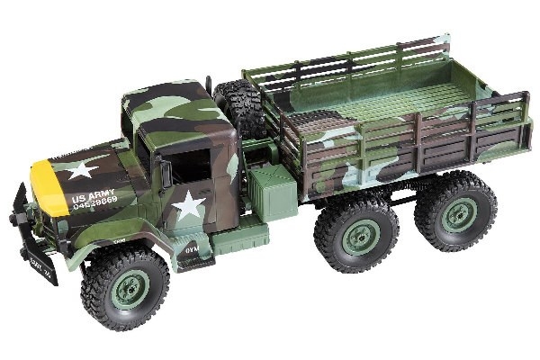 This impressive US Army designed vehicle will set the hearts of all outdoor adventurers racing. With highly detailed parts and a realistic design, this truck offers an unparalleled driving experience.The 6x6 military truck features all the authentic details that distinguish the original truck. The cardan shafts drive all 6 wheels, just like the prototype. Thanks to the fully locked differentials, the truck can develop its full potential off-road and overcome difficult obstacles with ease.