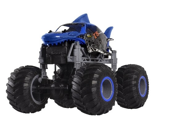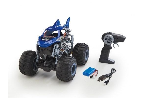 The Big Shark is an eye-catcher, no matter where you see it. But its equipment is even more impressive: huge rubber monster tyres, 2.4 GHz remote control for multiplayer fun, a replaceable 7.4V Li-Ion battery and USB charger make the Big Shark irresistible.