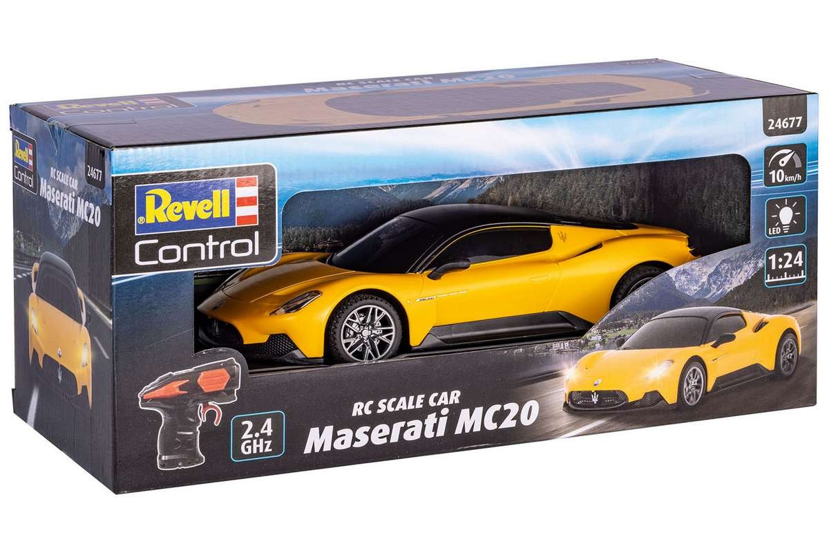Köra en supersportbil själv? Inga problem med Maserati MC20 från Revell Control! Denna vackert designade RC-bil i skala 1:24 har LED-frontbelysning och en hastighet på ca. 10 km/h. Fjärrkontrollen på 2,4 GHz är lämplig för höger- och vänsterhänta och erbjuder varje förare den perfekta hanteringen på racerbanan.