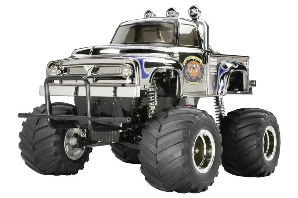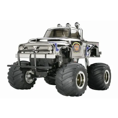 Combining a 1950"s style pick-up truck body with massive monster truck tires, the popular Midnight Pumpkin is now available with a metallic body for even more eye-catching R/C action. The super-detailed body is made with the same technology as Tamiya"s high-quality plastic model kits for the most realistic look possible. Metal plated wheels and damper cylinders further enhances this truck"s custom look.
