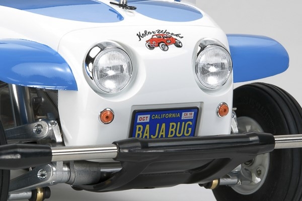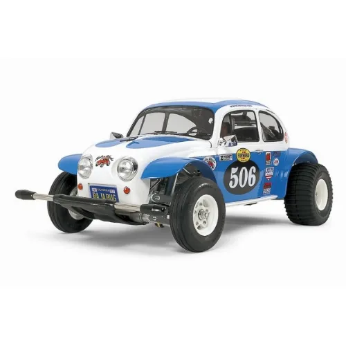 This model realistically reproduces the unique form of the buggy which was seen at the one-make race at "Baja 1000" in California, USA. The body is molded in white polystyrene and can be painted with plastic model paints. The rear-wheel drive 2WD chassis features realistic and aggressive driving performance that will no doubt excite you.