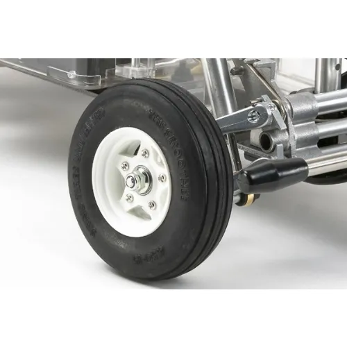 Electronics and battery are protected by a durable clear plastic mechanism box. Comes equipped with full ball bearings to reduce friction loss, and mounted on the 3-piece center-lock wheels are grooved front tires and ribbed rear tires that ensure superb off-road performance.