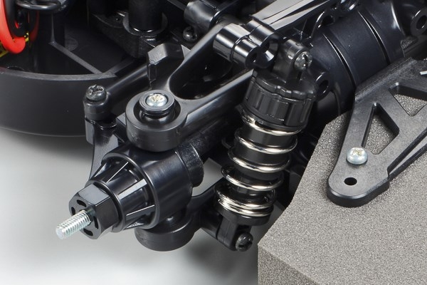 The bathtub frame of the evolved shaft-driven 4WD TT-01 Type-E has its motor and battery close to the ground for lower center of gravity and optimum balance. Mounted on the bathtub frame is a fiberglass reinforced nylon upper deck and gear covers improving rigidity, as well as a 3-piece tie rod providing a smoother steering action.