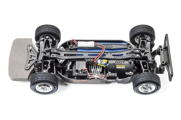 The low center of gravity, great balanced design, 4 wheel double wishbone suspension system, and front and rear differential gears all come together to produce excellent operating ability. 70mm-diameter radial tires are paired with metal plated wheels developed just for this model; the high sidewalls make for forgiving turns.