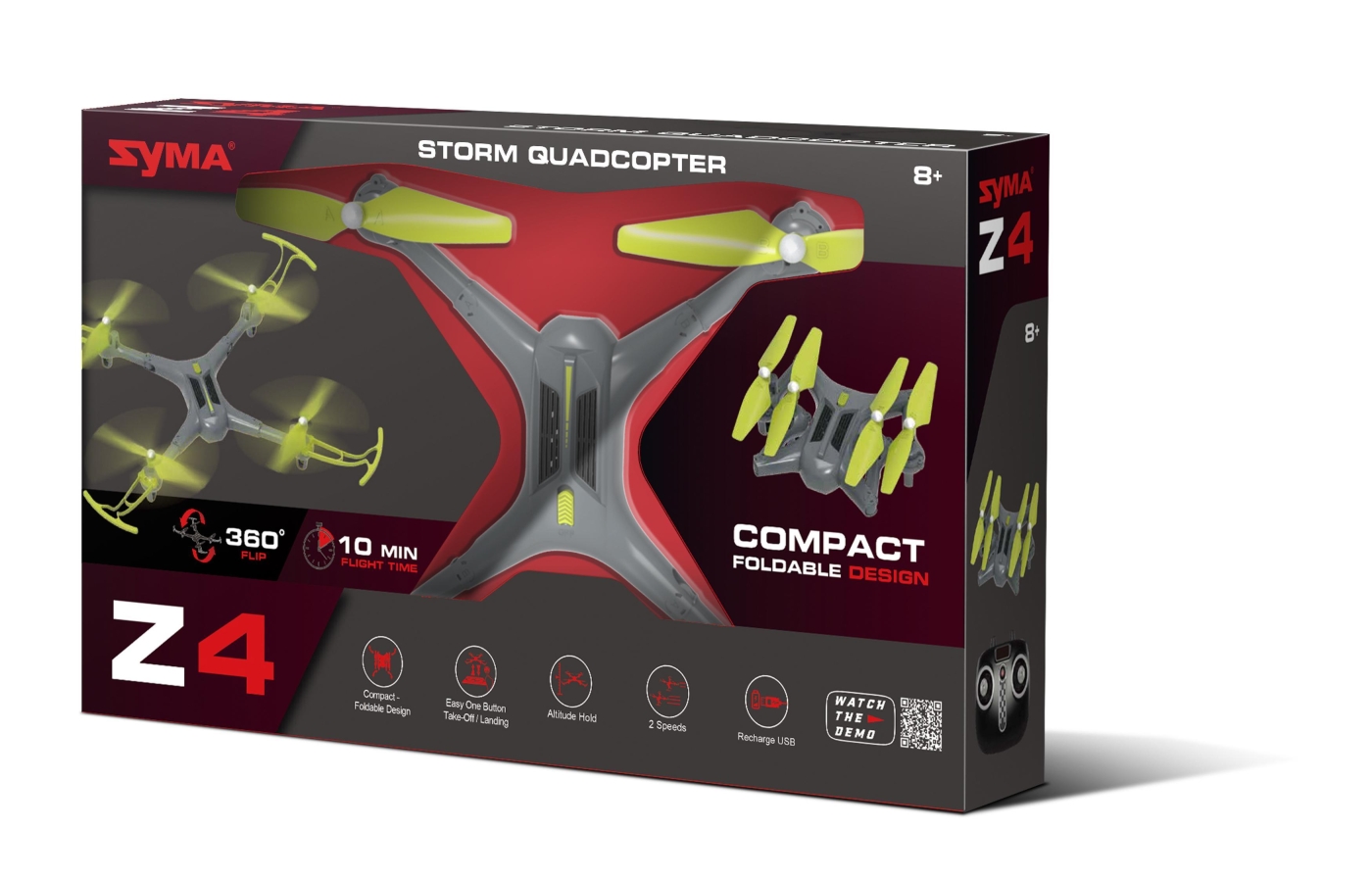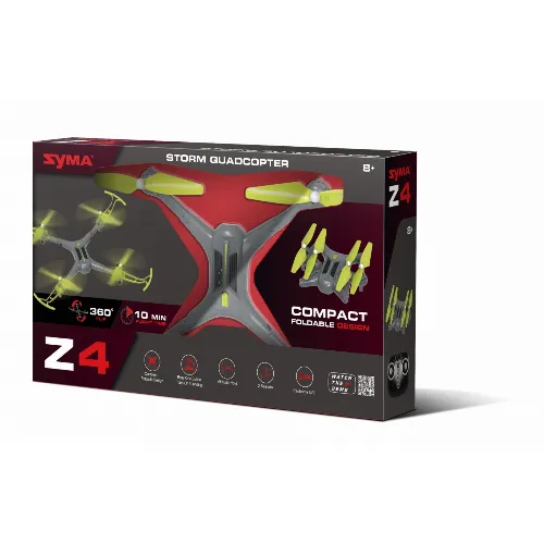 Z4 Storm Quadcopter är perfekt för nybörjare. Den mellanstora ramen gör drönaren både lätt och flexibel. Lätt att flyga med start och landning med en knapp, automatisk glidflygning, 11 min. flygtid och 2 hastigheter, med den lägsta hastigheten för nybörjare. Kan göra 360° svängar och har en stark lampa för tydlig orientering och nattflygning. Den kompakta, hopfällbara designen gör den perfekt för resor och praktisk förvaring. Avsedd för inomhusbruk (eller utomhus vid lite eller ingen vind).